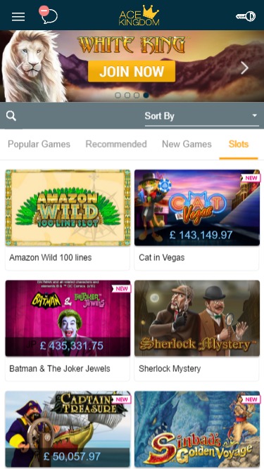 يقدم كازينو AceKingdom تشكيلة واسعة من ألعاب الفيديو سلوتس، بالإضافة إلى مجموعة رائعة من الألعاب الكلاسيكية. كما تتوفر جوائز كبرى تصاعدية، تُقدم جوائز بملايين الدولارات للفائزين.