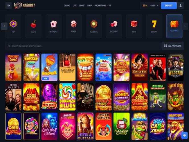 يدرك فريق Aerobet هذا الأمر، ولذلك أعدّت العلامة التجارية مجموعة مذهلة من الألعاب لتستمتع بها. تبدو المكتبة لا حصر لها، إذ تضمّ تقريبًا كل فئة ونوع يخطر ببالك. ويعود ذلك إلى حصول الكازينو على تراخيص من أكثر من 80 مزوّد برامج فريد.
