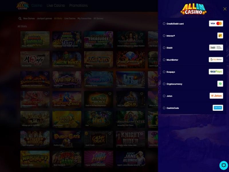 من النظرة الأولى، يبدو All In Casino جذابًا بالتأكيد.