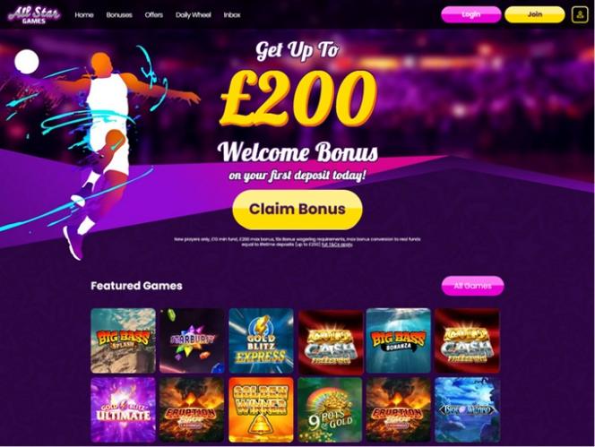 يقدم كازينو All Star Games مجموعة كبيرة من ألعاب الفيديو وألعاب الفيديو الكلاسيكية، مقدمة من مطورين كبار مثل Net Ent وNextGen Gaming وغيرهما. كما يقدم الكازينو بعض ألعاب الهواتف المحمولة، ما يعني إمكانية تدوير البكرات من أي مكان يتوفر فيه اتصال بالإنترنت.