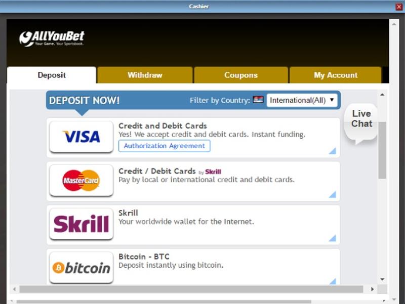 خيارات الخدمات المصرفية في All You Bet Casino