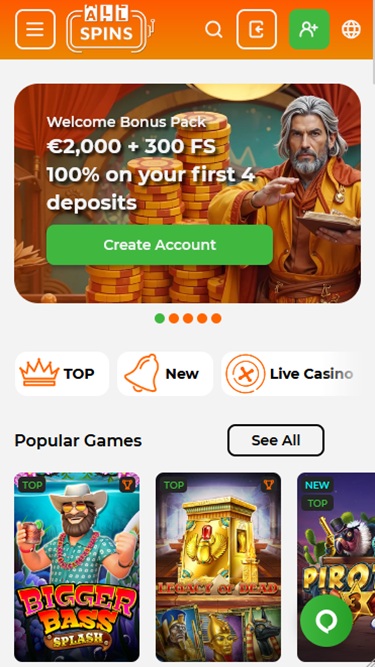 لكن لمن يرغب في معرفة كل تفاصيل AllSpins، يُرجى زيارة صفحة الشروط والأحكام أسفل الصفحة الرئيسية، وقسم المقامرة المسؤولة، وسياسة الخصوصية، وخدمة العملاء. يمكنك فتح القائمة المنسدلة أعلى الموقع للوصول إلى الإنجازات، والمتجر، والبطولات، وجميع فئات الألعاب.