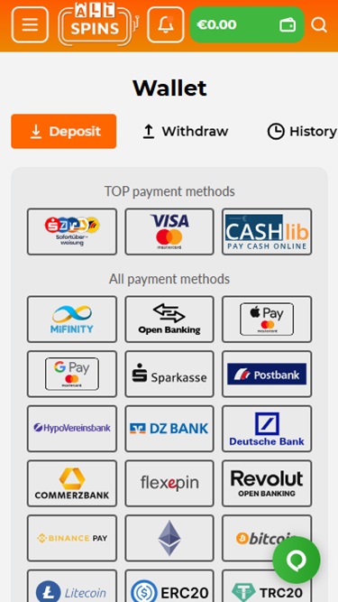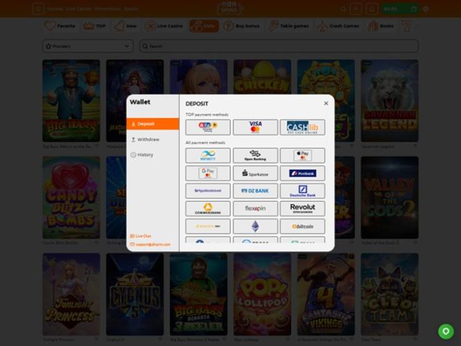 يمكن للاعبين استخدام العديد من طرق الدفع التقليدية للإيداع والسحب، مثل Apple Pay و Google Pay و Visa و Mastercard والتحويل البنكي و Jeton و MiFinity و Skrill و Neteller و Neosurf و Paysafecard . كما يقبل الكازينو العملات المشفرة كخيار مصرفي معتمد، مع توفر عملات Bitcoin و Dogecoin و Ethereum و Litecoin و Tether و Tron . سيوفر استخدام العملات المشفرة عمليات سحب أكثر أمانًا وسرعة.