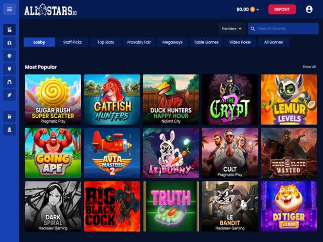 إذا كان هناك شيء واحد لا يبدو أن AllStars يفتقر إليه، فهو تنوع البرامج. يضم هذا المكان عددًا هائلاً من الاستوديوهات المعروفة، والأسماء المتخصصة، والمتخصصين في ألعاب الأعطال ، والعلامات التجارية التي تركز على ماكينات القمار، ومحتوى الكازينو المباشر، لذا فإن ردهة الألعاب تبدو أشبه بصالة ألعاب مزدحمة أكثر من كونها مجرد كتالوج محدود.