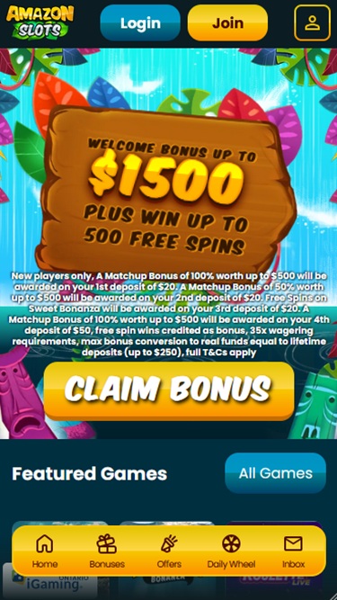 يدعو مشغلو أمازون سلوتس أونتاريو اللاعبين من أونتاريو للانضمام وتجربة جميع ألعاب الكازينو التي يقدمونها. لن يتم قبول اللاعبين من دول أخرى.