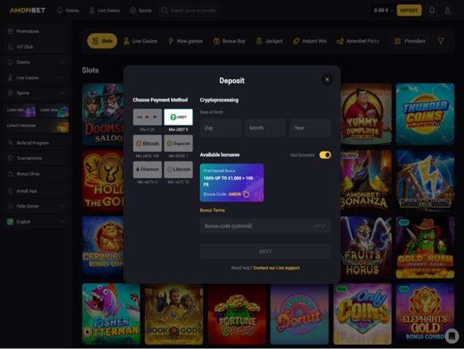 لإيداع وسحب الأموال من حسابك في الكازينو، يوفر لك كازينو Amonbet العديد من طرق الدفع، بما في ذلك Visa و Mastercard والتحويل البنكي و SOFORT Banking . بالإضافة إلى ذلك، يمكن للاعبين استخدام العملات المشفرة مثل Bitcoin و Dogecoin و Ethereum و Litecoin و Tether لإدارة أموالهم.