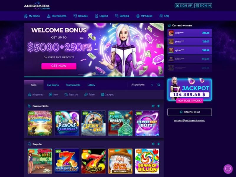 كازينو أندروميدا، المعتمد من هيئة ألعاب كوراساو، هو علامة تجارية تدعم بيتكوين. بالتعاون مع مطوري محتوى إلكتروني متميزين مثل مايكروغيمينغ وإيغدراسيل وبلايسون، يقدم الكازينو مجموعة متنوعة من المغامرات المميزة.