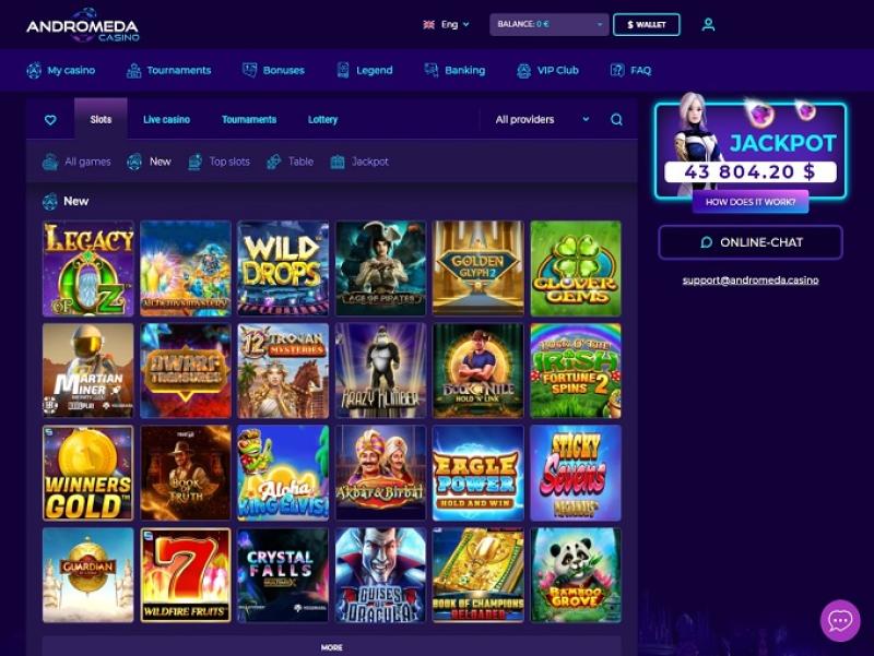 بما أن إصدارات Microgaming وGanapati وTom Horn Gaming وRed Rake و Endorphina وPlayson وYggdrasil هي من بين الاستوديوهات التي تُعدّ إصداراتها جزءًا من الكتالوج، فلا يساور اللاعبين أدنى شك في جودة أو كمية الألعاب. يقدم كازينو أندروميدا ماكينات القمار والجوائز الكبرى، بالإضافة إلى مجموعة مختارة من ألعاب الطاولة ( الروليت والباكارات والبلاك جاك في المقام الأول) وإصداراتها مع موزع مباشر.