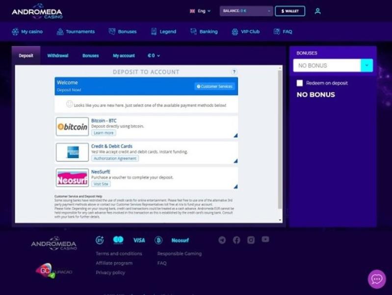 قم بإلقاء نظرة على طرق الدفع المتاحة التي يقدمها كازينو أندروميدا: