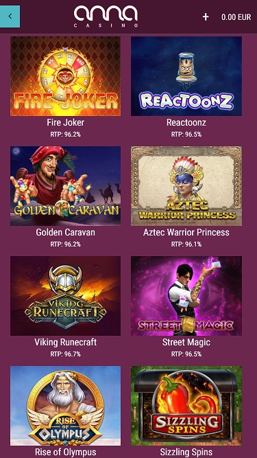 كازينو آنا يعمل بنظام Microgaming, Net Entertainment, BetSoft, Big Time Gaming, Evolution Gaming, Ezugi, Genesis Gaming, Habanero Systems, Play'n GO, Rabcat, Yggdrasil, GameArt, Pragmatic Play, Games Global, NextGen and Old Skool Studios ، الذي يوفر ألعابه عبر منصة ويب، ما يعني أنك لست بحاجة إلى تنزيل أي برنامج للوصول إلى الكازينو. كما يتوفر موقع جوال لمن يرغب باللعب على هواتفهم الذكية أو أجهزتهم اللوحية.
