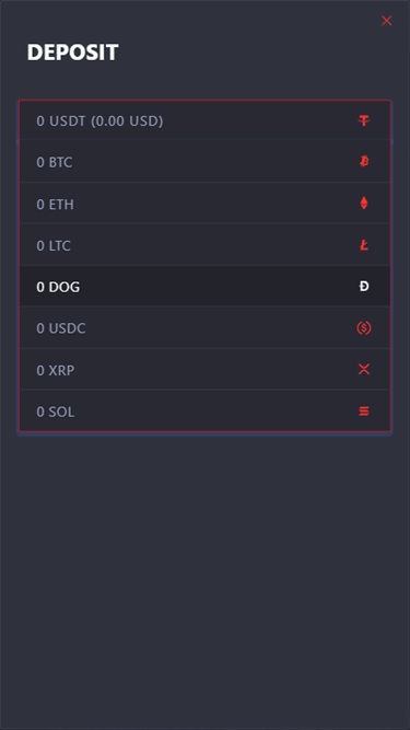 أثناء عملية التسجيل، سيُطلب منك اختيار العملة المشفرة التي تفضلها. يمكنك الاختيار من بين العملات الرقمية الشائعة التالية: لايتكوين، بيتكوين، إيثريوم، ريبل، دوجكوين، تيثر، سولانا، وUSD Coin.