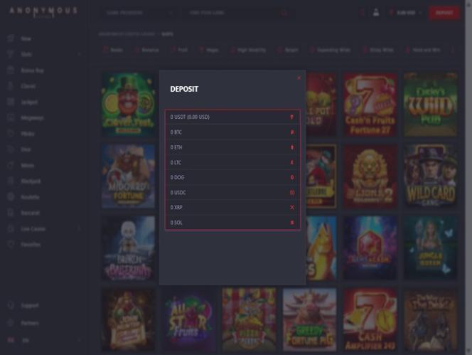كازينو Anonymous مخصص للعملات المشفرة فقط، ولا يتطلب التحقق ، وكما هو متوقع، عملية التسجيل هنا غاية في السهولة. لكي تصبح عضوًا في الكازينو، ستحتاج إلى تخصيص ثانية من وقتك لإدخال بريدك الإلكتروني واختيار كلمة مرور. عند وصولك إلى لوحة تحكم اللاعب، ستلاحظ أن الأمور هنا سهلة للغاية، ونعتقد أن التعامل معها سيكون في غاية السهولة.