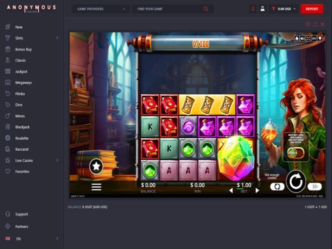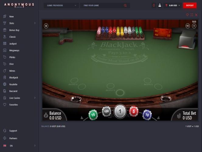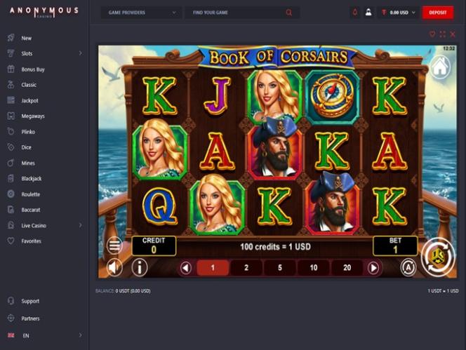 كازينو أنونيموس هو كازينو على الإنترنت تديره شركة ألعاب إلكترونية ذات خبرة واسعة، وهو موجه للاعبين القادمين من ألمانيا وكندا ونيوزيلندا. الموقع مُترجم إلى اللغات الألمانية والإنجليزية والإسبانية والنرويجية والبرتغالية والروسية لتسهيل استخدام اللاعبين. يُرجى العلم أنه عند زيارتنا، كانت هذه العلامة التجارية تعمل بدون ترخيص مقامرة.