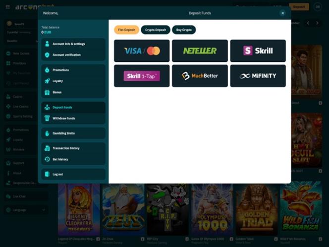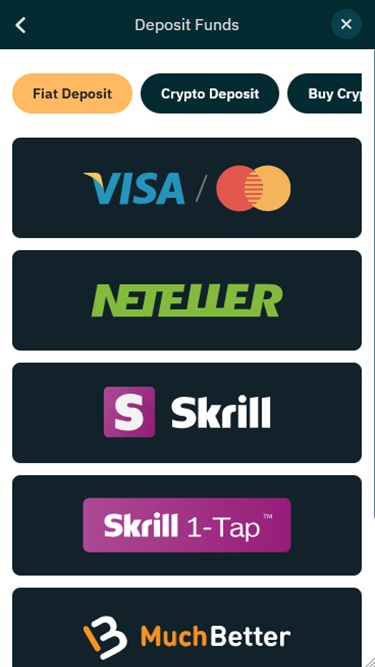 تقبل هذه العلامة التجارية للمقامرةBitcoin كخيار للدفع ، وخيارات المحفظة الإلكترونية الشهيرة، وبطاقات الدفع، والتحويلات البنكية القياسية.
