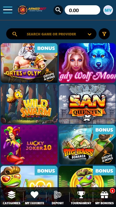الشراكة مع موردي برامج كازينوهات الإنترنت الموثوقين تعزز السمعة وتضمن خدمة وترفيهًا عاليي الجودة للاعبين. اختارت ArmedBet بعناية ألعابًا للفئات التالية: ماكينات القمار بالفيديو، وماكينات القمار ذات الجوائز الكبرى، وماكينات القمار الكلاسيكية، وألعاب الموزع المباشر ، وألعاب الأركيد، وألعاب الطاولة، وفيديو بوكر.