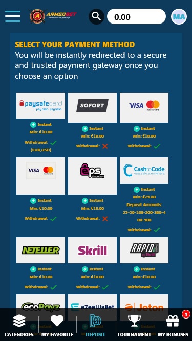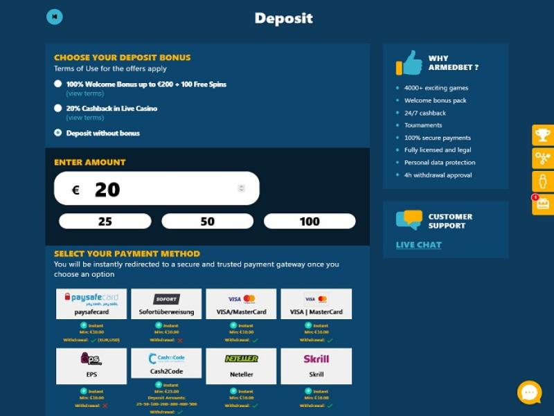 خيارات الخدمات المصرفية في ArmedBet Casino
