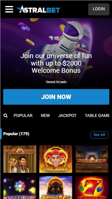 هل تشعر وكأنك في عالم آخر، كأنك ترغب في الانطلاق على متن مركبة فضائية واستكشاف الكون؟ إذا كان الأمر كذلك، فعليك تجربة AstralBet، الذي أطلقته شركة Viral Technologies، NV، عام ٢٠١٦. يتميز الكازينو بمكتبة ألعاب رائعة، ومدفوعات سريعة جدًا على الأرباح، وإدارة ممتازة، مما يجعل AstralBet كازينو إلكترونيًا يستحق التجربة.