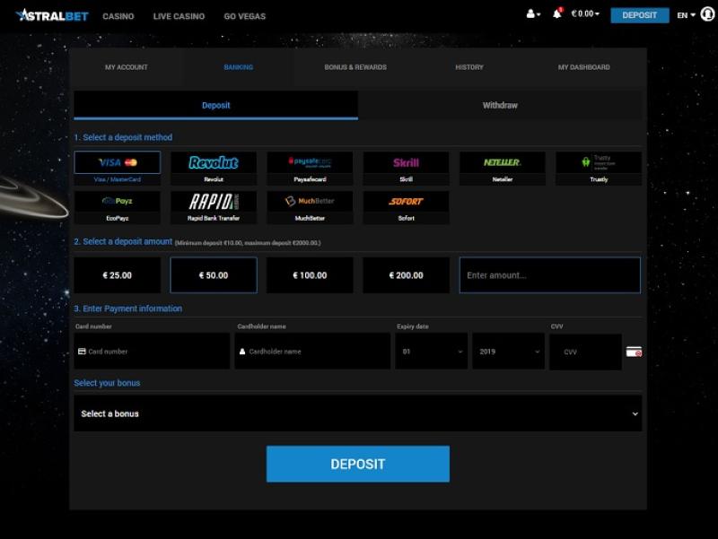 خيارات الخدمات المصرفية في AstralBet