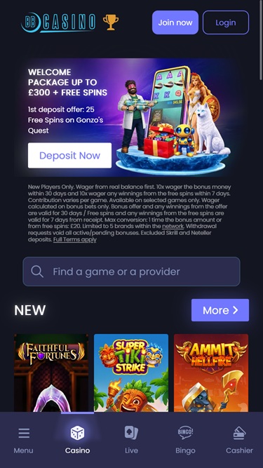 يرحب كازينو BB بالوافدين الجدد بحزمة مكافآت ملحوظة صالحة للإيداعات الثلاثة الأولى لدى الكازينو.