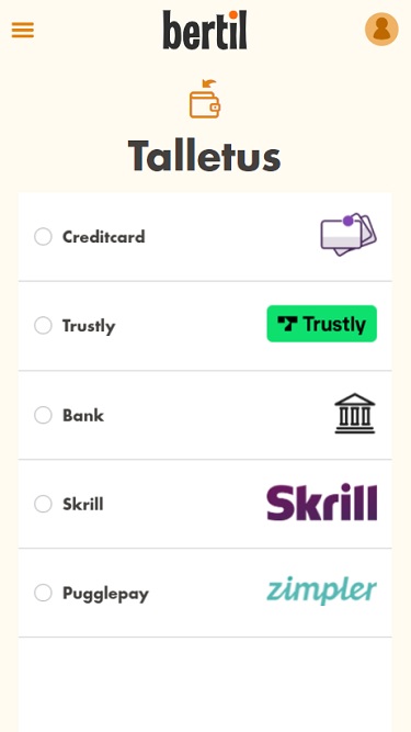 خيارات الخدمات المصرفية في Bertil