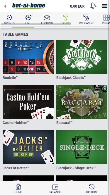بالإضافة إلى ألعاب الكازينو القياسية، يقدم Bet-at-home مجموعة قوية من المراهنات الرياضية وكازينو مباشر لعملائه.