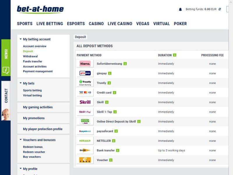 خيارات الخدمات المصرفية في Bet-at-home