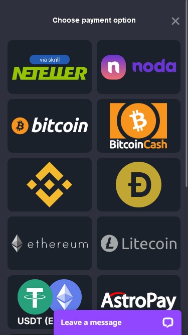 تتوفر بطاقات الدفع الشهيرة والمحافظ الإلكترونية مثل Skrill وNeteller وأنظمة الدفع عبر الإنترنت الأخرى والتحويلات المصرفية المباشرة ومحافظ Bitcoin وطرق الدفع المشفرة الأخرى للإيداع والسحب في مكان الألعاب هذا.