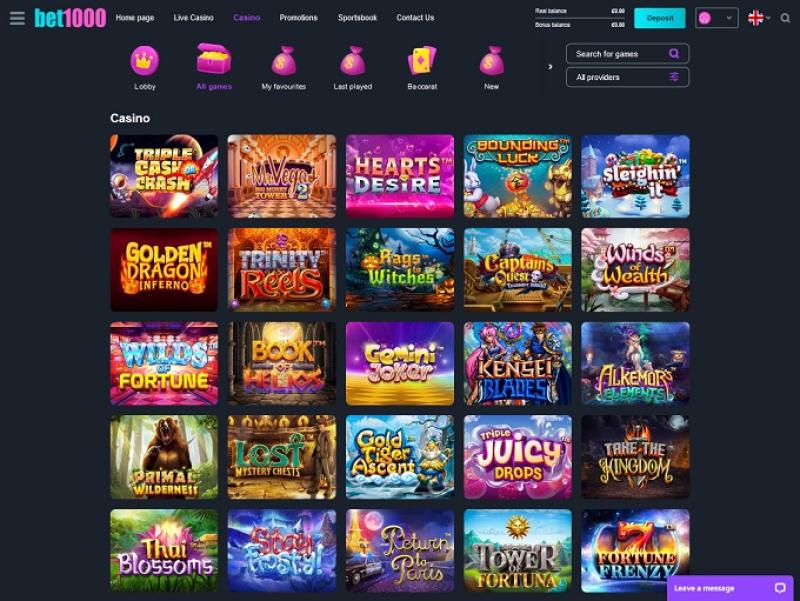 تتضمن القائمة الطويلة من الشركات التي يتعاون معها كازينو bet1000 بعضًا من أشهر مزودي برامج الكازينو . يمكن للمقامرين الاعتماد على ردهة مختارة بعناية ومكتبة ألعاب توفر مصدرًا لا ينضب من الترفيه.