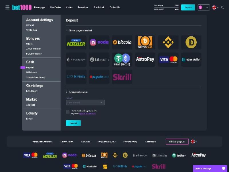 يحظى اللاعبون النشطون في كازينو bet1000 بتقدير كبير. يقدم المشغل برنامج ولاء بخمسة مستويات: مبتدئ، هاوٍ، مقامر، محترف، ونخبوي.