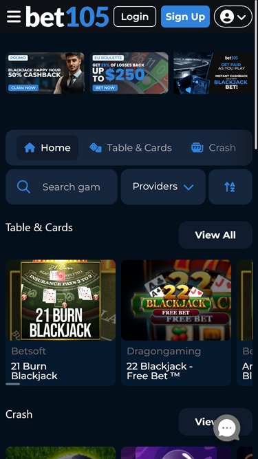 Bet105 هو موقع مراهنات رياضية وكازينو على الإنترنت يدعم العملات المشفرة ويتوافق مع الولايات المتحدة الأمريكية، وقد لفت انتباهنا منذ اللحظة التي دخلنا فيها إلى الصفحة الرئيسية للكازينو، وذلك بفضل تنوع ألعاب الكازينو المتاحة على الإنترنت، والأجواء الرائعة، والتصميم الجميل الذي ساعدنا على التنقل فيه بسهولة تامة من أول نقرة.