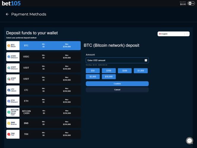 يحق لـ Bet105 فرض رسوم على عمليات الإيداع والسحب، وهناك حد أقصى أسبوعي للسحب النقدي.
