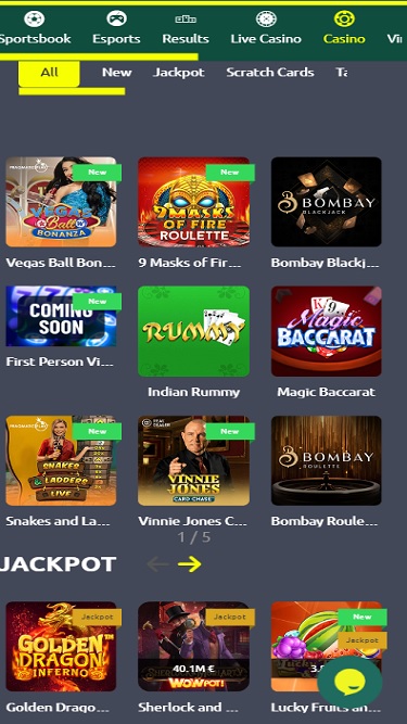 سيتمكن المقامرون من الحصول على معلومات مفيدة وتصفح ألعاب الكازينو المنظمة جيدًا في الفئات التالية: Sportsbook، Esports، Results، Live Casino، Casino، Virtual Sports، Crash & Fast، Promotions والأخبار والمدونة.