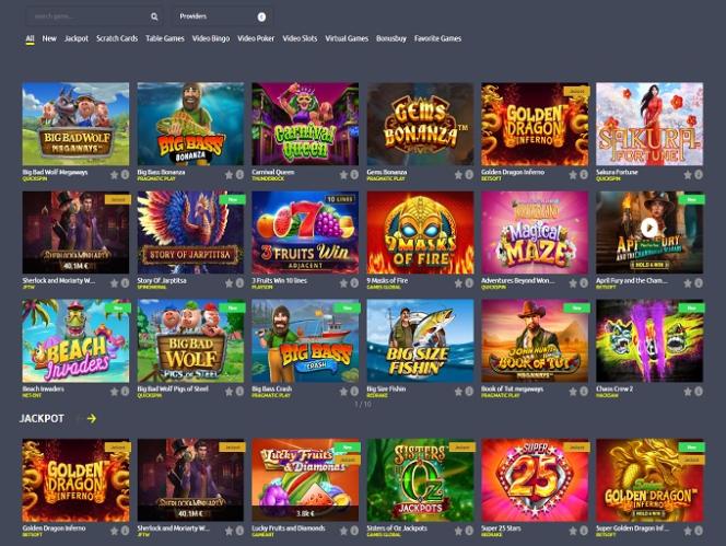 فيما يلي بعض ألعاب الفيديو الموصى بها: Big Bad Wolf Megaways، Big Bass Bonanza، Carnival Queen، Gems Bonanza، Golden Dragon Inferno، Sakura Fortune، Sherlock and Moriarty، Story Of Jarptitsa، 3 Fruits Win 10 lines، 9 Masks of Fire، Adventures Beyond Wonderland Magical Maze…