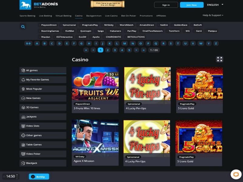 منذ عام ٢٠١٣، يقدم كازينو بيتادونيس خيارات مراهنة متنوعة لعملائه. يضم الموقع قسمًا كاملاً للمراهنات الرياضية، وكازينو، وغرفة بوكر، وقد اكتسب شعبية واسعة بفضل مجموعته الواسعة من الألعاب، ومكافآته المميزة، ونظامه المصرفي المتميز.معلومات الكازينو