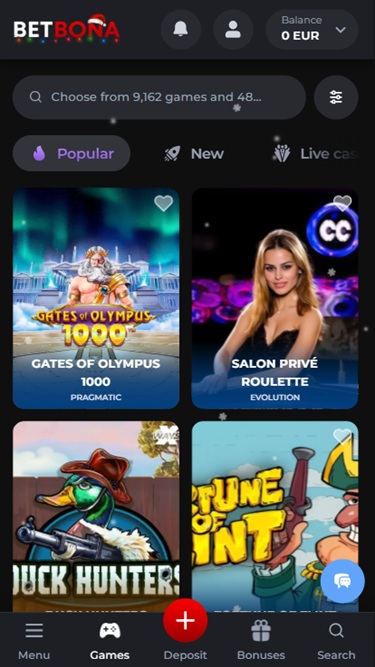 تم إطلاق كازينو BetBona في أواخر عام 2025، وهو موقع قمار حديث يقبل في المقام الأول اللاعبين من إيطاليا وإسبانيا والبرتغال، بهدف وحيد هو تزويدهم بمجموعة كبيرة من ألعاب الكازينو مثل ماكينات القمار بأموال حقيقية، والموزعين المباشرين، وألعاب الطاولة، وألعاب الكراش، كل ذلك مع تقديم خطة ترويجية مذهلة مليئة بالمكافآت والعروض الترويجية والفعاليات والبطولات والجوائز الأخرى الفريدة.