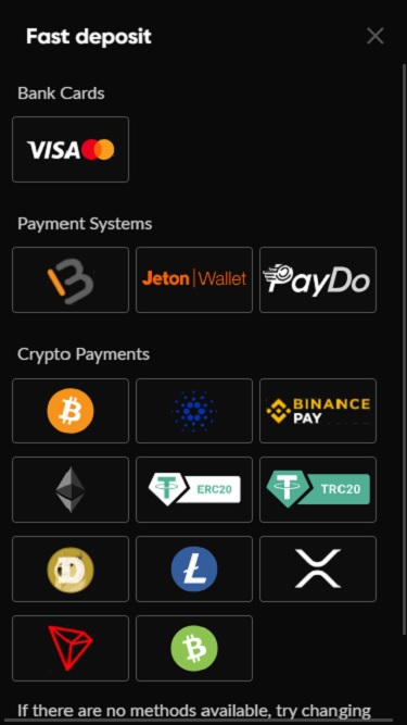 تقدم هذه العلامة التجارية للألعاب مجموعة كبيرة من طرق الدفع التي يمكن استخدامها للإيداع والسحب بما في ذلك محافظ العملات المشفرة والمحافظ الإلكترونية والتحويلات المصرفية المباشرة وأنظمة الدفع الأخرى الشائعة في بعض الولايات القضائية.