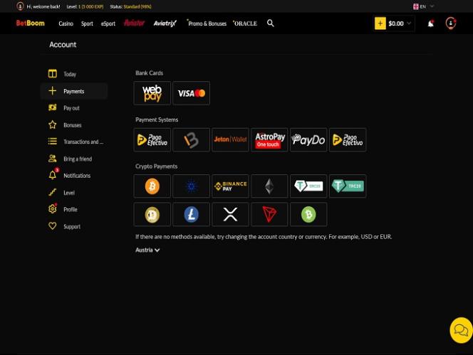تهتم BetBoom حقًا برضا العملاء ويمكن للاعبين الاعتماد على مساعدة موظفي الكازينو في أي وقت عبر البريد الإلكتروني والدردشة المباشرة والهاتف.