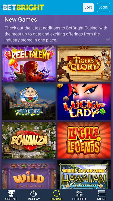 يُقدّم كازينو BetBright مئات ألعاب ماكينات القمار، ومعظمها من ألعاب الفيديو من Microgaming ومطوّرين آخرين لديهم اتفاقيات محتوى مع عملاق جزيرة مان. كما يُقدّم ألعابًا كلاسيكية بثلاث بكرات وجوائز كبرى تصاعدية تُمكّنك من الثراء الفوري إذا حالفك الحظ.