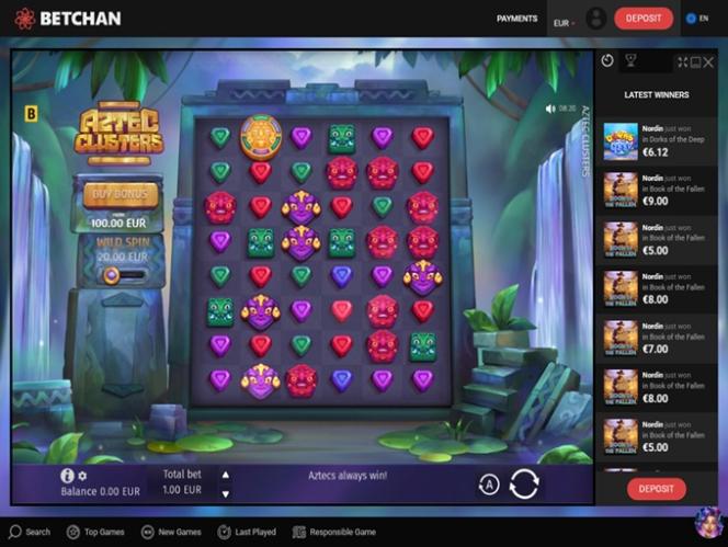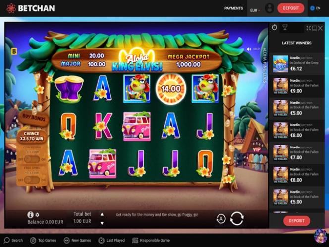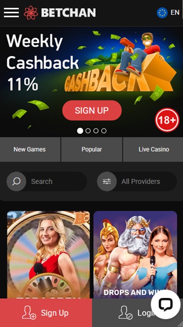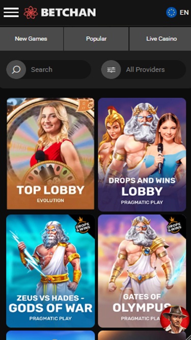 كازينو BetChan مدعوم بواسطة Microgaming, Playtech, BetSoft, 1x2gaming, Amatic Industries, Big Time Gaming, ELK Studios, Evolution Gaming, EYECON, Ezugi, lightningboxgames, Oryx, Play'n GO, playson, Quickspin, Rabcat, Relax Gaming, SOFTSWISS, Thunderkick, Yggdrasil, Endorphina, Wazdan, Booming Games, Pragmatic Play, Nolimit City, Red Tiger Gaming, Booongo, Spinomenal, Felix Gaming, Red Rake Gaming, Skillzzgaming, Fugaso, Belatra Games, Fantasma Games, Kalamba, Spin Games, Platipus Gaming, Nucleus Gaming, Spadegaming, Triple Edge Studios, BGAMING, Northern Lights Gaming, Evoplay, Stormcraft Studios, IGTech, Switch Studios, Electric Elephant Games, Bulletproof Games, All41 Studios, Gluck Games, Mascot Gaming, TVBet, NetGame Entertainment, Pulse 8 Studios, Neon Valley Studios, Spearhead Studios, Swintt, TrueLab Games, SpinPlay Games, Mancala Gaming, SmartSoft Gaming, KA Gaming, Atmosfera, Real Dealer Studios, GONG Gaming, Blue Guru Games, Lady Luck Games, Buck Stakes Entertainment, Games Global, Reevo, Amusnet Interactive, Wizard Games, 2by2 Gaming, Ash Gaming, CT Interactive, Leander Games, Pariplay, Push Gaming, Tom Horn Gaming, Gamomat, Mr Slotty, BF Games, Bally Wulff, Iron Dog Studio, Old Skool Studios, Foxium, Just For The Win, Reflex Gaming, PearFiction Studios, Wild Streak Gaming, Slingshot Studios, Golden Hero, Jade Rabbit Gaming, RubyPlay, 4ThePlayer, AvatarUX, Gamevy, Crazy Tooth Studio, High 5 Games, Groove Gaming, ReelPlay, Japan Technicals Games, Alchemy Gaming, Rarestone Gaming, Black Pudding Games, Snowborn Games, Boomerang Studios, Hacksaw Gaming, Max Win Gaming, Bang Bang Games, Gamzix, Half Pixel Studios, Arcadem, Slotmill, SilverBack Gaming, Peter And Sons, Aurum Signature Studios, Onlyplay, Gamebeat, FlipLuck, Area Vegas, RAW iGaming, TaDa Gaming, Apparat Gaming, Spribe, Circular Arrow, Print Studios, 1spin4win, Gaming Corps, HammerTime Games, Four Leaf Gaming, INO Games, Nailed It! Games and Atomic Slot Lab ، وتُقدم ألعابه عبر منصة ويب. كما تم تصميم موقع للهواتف المحمولة لمن يرغبون في اللعب على شاشات الهواتف الذكية والأجهزة اللوحية الصغيرة.
