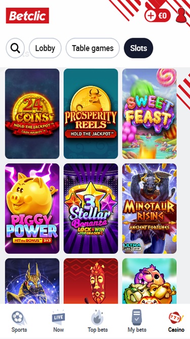 كازينو Betclic مدعوم من Microgaming, Net Entertainment, Big Time Gaming, Evolution Gaming, Habanero Systems, iSoftBet, lightningboxgames, Oryx, Play'n GO, playson, Thunderkick, Wazdan, Pragmatic Play, Nolimit City, GAMING1, Red Rake Gaming, Fugaso, SYNOT Games, Spin Games, Spinmatic, Triple Edge Studios, Stormcraft Studios, All41 Studios, Gameburger Studios, Games Global, Amusnet Interactive, Wizard Games, bluberi, NextGen, Pariplay, Tom Horn Gaming, WMS, SG Interactive, Gamomat, Scientific Games, MGA, Betdigital, PearFiction Studios, Wild Streak Gaming, Slingshot Studios, RubyPlay, Hacksaw Gaming, Gaming Corps, Atomic Slot Lab, Reel Kingdom, Indigo Magic and Light & Wonder ، الذي يوفر ألعابه عبر منصة ويب. كما يوفر الكازينو موقعًا للهواتف الذكية والأجهزة اللوحية.Blackjack