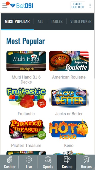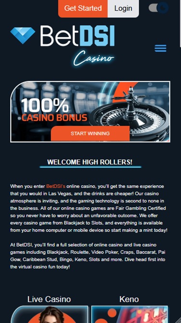 BetDSI اسمٌ بارزٌ في عالم ألعاب الإنترنت منذ أكثر من 25 عامًا. تأسس الكازينو عام 1998، وهو مرخصٌ في جمهورية كوستاريكا ، وفقًا لموقعه الإلكتروني. يُقدّم مجموعةً لا بأس بها من الألعاب وأسواق المراهنات، مما يجعله خيارًا مثاليًا للاعبين الذين يتطلعون إلى الانغماس في عالم الألعاب!