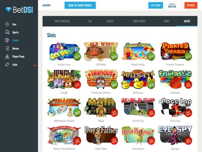 كما ذكرنا سابقًا، يُقدم BetDSI مجموعة واسعة من الألعاب التي يُمكنك الاستمتاع بها - البلاك جاك، الروليت، البوكر، الباكارات ، وغيرها الكثير. ومع ذلك، تُعتبر ماكينات القمار (Slots) بلا شك من أكثر ألعاب الكازينو لعبًا، إن لم تكن الأكثر شعبية.