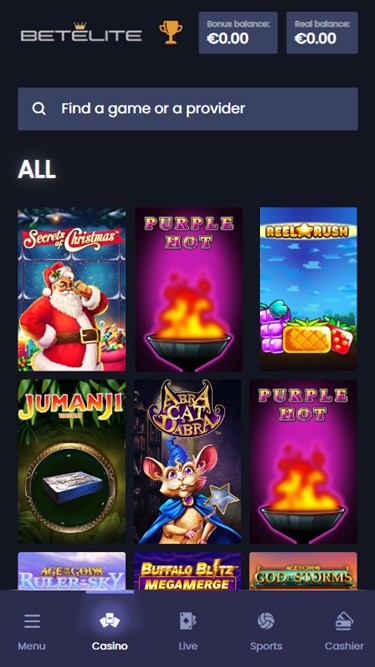 سيحب اللاعبون الذين يهتمون بشكل أساسي بالحصول على مكتبة ضخمة من ألعاب القمار بأموال حقيقية يمكنهم استكشافها قضاء وقتهم في BetElite، حيث تتميز هذه العلامة التجارية للمقامرة بمجموعة هائلة من ألعاب القمار عبر الإنترنت للاختيار من بينها، والأكثر شعبية هي: