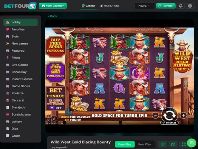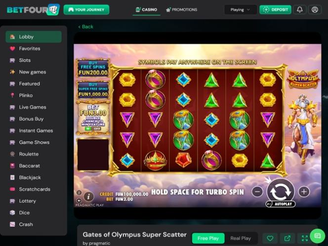 تتميز منصة كازينو BetFourU بتصميم سهل الاستخدام، والتنقل بين صفحاتها سلس للغاية. بالإضافة إلى باقة ترحيبية سخية، يمكن للاعبين الاعتماد على خيارات دفع متعددة ومجموعة ألعاب غنية.