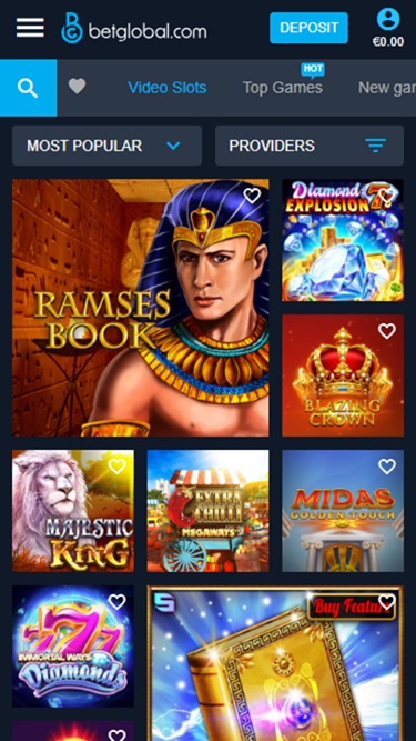 يقدم لك كازينو BetGlobal هذا النوع من الإثارة، حيث تضم مكتبته أكثر من 125 مزودًا للبرامج. من بين هذه الأسماء، ستتمكن من لعب ألعاب من استوديوهات عريقة مثل Quickspin و Nolimit City و Pragmatic Play و Relax Gaming ، إلى جانب مجموعة كبيرة من المزودين الجدد مثل Thunderkick وAsia Gaming وFoxium.