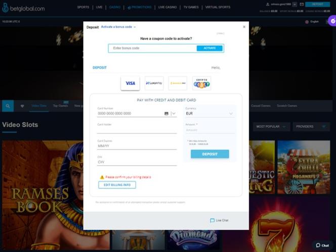 خيارات الخدمات المصرفية في BetGlobal Casino