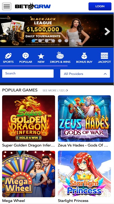 يتيح كازينو BetGRW للاعبين الاختيار من بين أكثر من 40 استوديو مزودًا بأكثر من 1000 لعبة فريدة في جميع الفئات. سواء كنت من محبي ألعاب الفرق العريقة أو اكتشاف مطورين جدد ومثيرين، يمكنك القيام بذلك بأناقة هنا. خيارات الألعاب واسعة؛ ستحتاج إلى وقت كافٍ لتجربة كل شيء.
