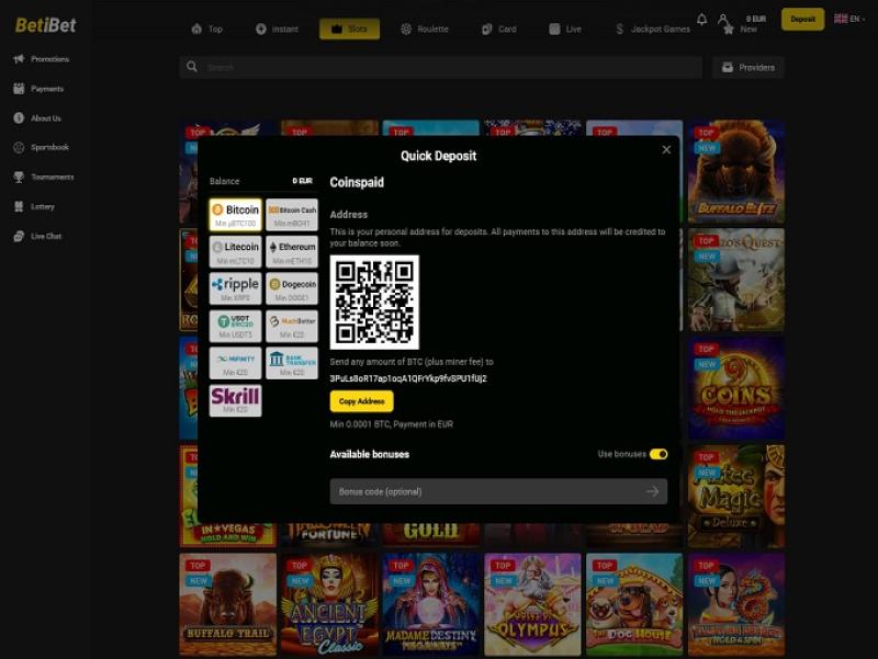 كازينو BetiBet هو كازينو مشفر عبر الإنترنت ومشغل مراهنات رياضية مسجل بموجب قوانين كوراساو، ومنظم ومرخص من قبل Antillephone NV.