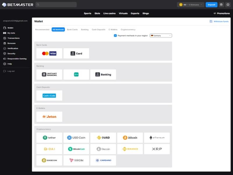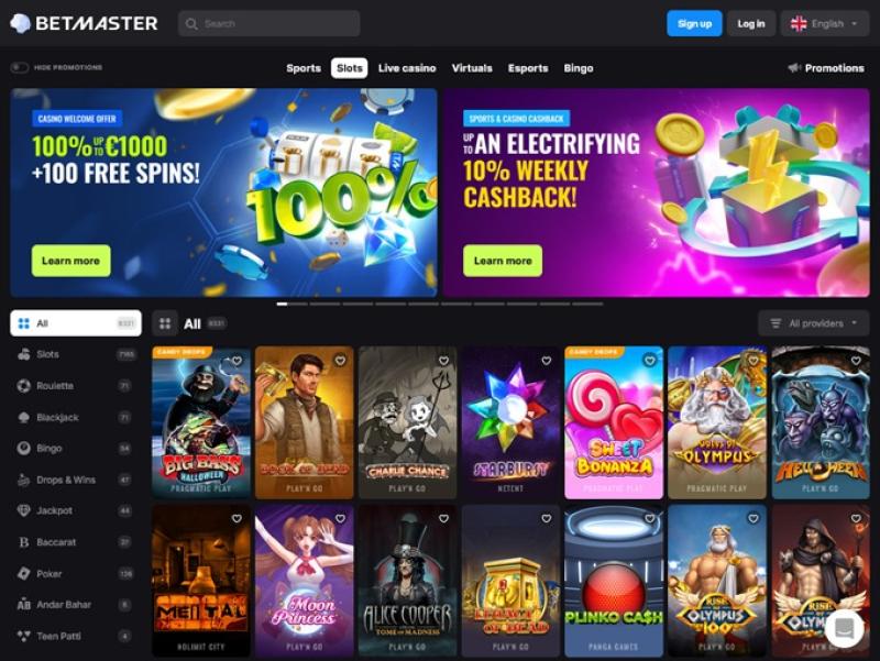 يعمل Betmaster بواسطة Microgaming, Net Entertainment, Playtech, Real Time Gaming, BetSoft, 1x2gaming, Amatic Industries, Big Time Gaming, ELK Studios, Espresso Games, Evolution Gaming, Ezugi, Habanero Systems, HO Gaming, lightningboxgames, Novomatic, Play'n GO, playson, Relax Gaming, Thunderkick, Vivo Gaming, Yggdrasil, Endorphina, Wazdan, GameArt, Betgames, Booming Games, Pragmatic Play, Nolimit City, Red Tiger Gaming, Spinomenal, Red Rake Gaming, Xprogaming, Fugaso, Belatra Games, Fantasma Games, Kalamba, Revolver Gaming, Platipus Gaming, Skywind, Spinmatic, Spadegaming, Triple Edge Studios, BGAMING, Concept Gaming, Fazi, Evoplay, Stormcraft Studios, Switch Studios, OneTouch, Electric Elephant Games, Pocket Games Soft, Bulletproof Games, All41 Studios, Gluck Games, NetGame Entertainment, Gameburger Studios, Pulse 8 Studios, Slot Factory, Spearhead Studios, Swintt, HungryBear Gaming, SmartSoft Gaming, KA Gaming, Atmosfera, Blue Guru Games, Holle Games, mplay, Games Global, Amusnet Interactive, Ash Gaming, Blueprint Gaming, CT Interactive, Greentube, Igrosoft, Pariplay, Tom Horn Gaming, BF Games, Iron Dog Studio, Foxium, Just For The Win, Reflex Gaming, Storm Gaming Technology, Wild Streak Gaming, Slingshot Studios, Fortune Factory Studios, Jade Rabbit Gaming, RubyPlay, 4ThePlayer, AvatarUX, Gamevy, Crazy Tooth Studio, Rarestone Gaming, Vibra Gaming, Black Pudding Games, Boomerang Studios, Hacksaw Gaming, Max Win Gaming, Bang Bang Games, Copacabana Gaming, Gamzix, Slotmill, Triple Cherry, SilverBack Gaming, Peter And Sons, Eurostar Studios, Aurum Signature Studios, Charismatic, Lotto Instant Win, Onlyplay, FastSpin, Panga Games, GoldenRace, Aviatrix, Winfinity, Amigo Gaming, Apparat Gaming, Spribe, Print Studios, Gaming Corps, BetSolutions, Four Leaf Gaming and Reel Kingdom ، وتُشغّل ألعاب الكازينو عبر منصة ويب يُمكن الوصول إليها عبر متصفح الإنترنت. قد لا يبدو الموقع رائعًا، ولكنه يُقدّم أداءً أفضل على الأجهزة المحمولة، إذ يبدو أكثر وضوحًا.