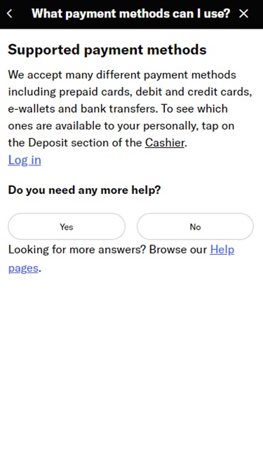 النظام المصرفي جيد، وإن لم يكن بنفس سرعة بعض الكازينوهات الإلكترونية الموجودة في دول أخرى. ويرجع ذلك إلى القيود المصرفية المتعلقة بالمقامرة الإلكترونية. مع ذلك، يمكنك تحويل الأموال باستخدام بطاقات الائتمان، وSkrill، وPayPal، وPayWithCash. قد تستغرق عملية الدفع بضعة أيام، ولكن يتم إرسالها بشكل موثوق.